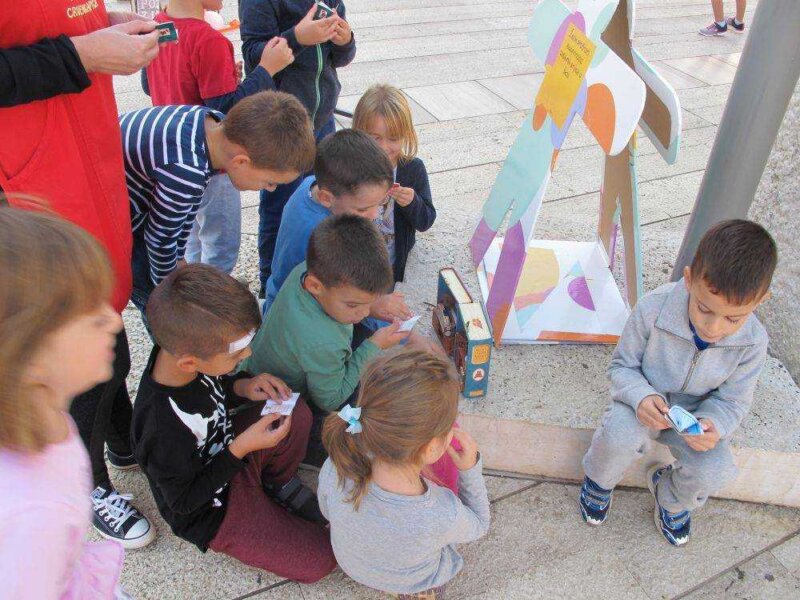 U petak od 10 do podneva u Živoj knjižnici bili su, osim spomenute djece iz Crvenkapice, učenici dvaju razreda Srednje škole Mate Balote i učenici osmog D razreda – onoga u koji ide čak četvero mladih volontera i volonterki: Karlo, Vili, Timotej i Aurora. Vrlo su pažljivo slušali svoje kolegice i kolege, postavili im i poneko pitanje, nagradili ih pljeskom.