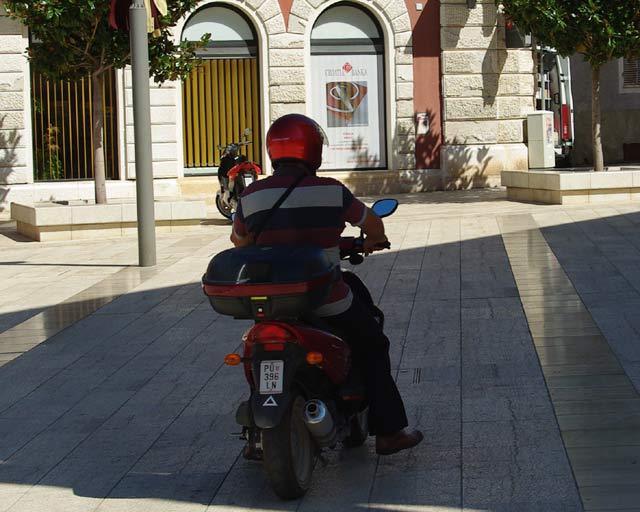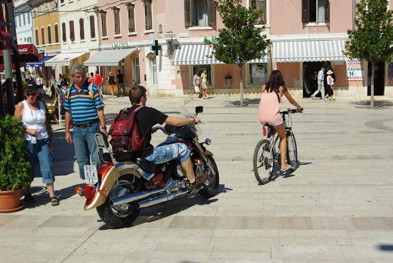 Gužva turista i domaćih prolaznika, užurbane pripreme za nadolazeću Giostru kao kulisa, a vozači kombija, motocikala i skutera kao glavni likovi porečke prometne farse. Doslovno pet minuta stajanja na Trgu slobode bilo je dovoljno da se snimi nekoliko likova koji bez pardona slalomiraju kroz prolaznike.