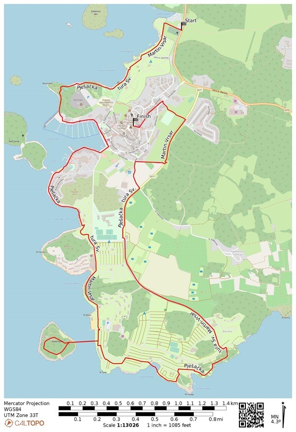 - Trasa od 11 km prolazi kroz Vrsar, Montraker, Belvedere, Porto Sole, Otok Koversada, Blesička, te se završava na Trgu Degrassi.
