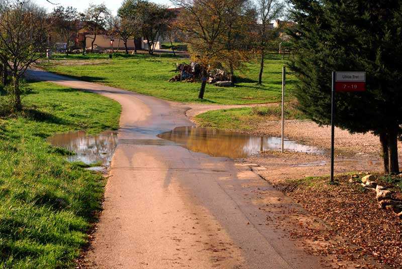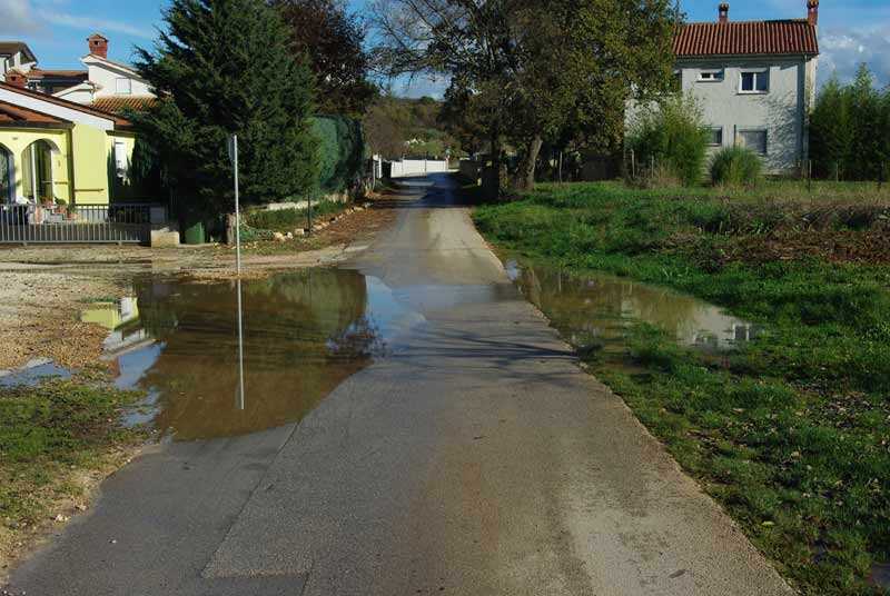 Raskrsnica u ulici Trsi u porečkom prigradskom naselju Vrvari nakon svake kiše "propliva", a mještani automobilima moraju voziti kroz veliku lokvu kojoj su, naročito tijekom jeseni i zime, potrebni tjedni da se isuši.
