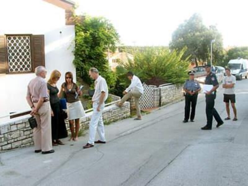 Inspektori porečke ispostave Državnog inspektorata pečate ulaz u kuću iznajmljivača na crno u Červar Portu, kolovoz 2006.