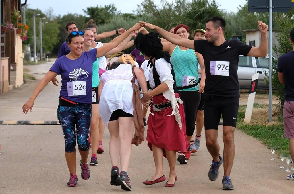 Dobro pripremljeni trkači, na startu su dobili i bocu vina kao popudbinu, pa su trčeči vinskim stazama obilazili najčuvenije vinske podrume i opskrbne stanice na Bujštini gdje su degustirali čuvena vina istarskih vinara. Nažalost, ove se subote, zabavni vinski maraton nadomak Umagu, pretvorio u utrku s oblacima i natjecanje protiv zastrašujuće oluje, ali vinski natjecatelji nisu odustajali. Trčali su posvuda i izbijali prema središtu Umaga iz svih pravaca, Finide, Rožaca, Segeta, Vrha, a neki su čak iskakali iz šume pokraj tvornice Hempel tražeći put prema Stella Marisu. Impresivno je bilo promatrati ih kako „mokri do kostiju“, nepokolebljivo trče Kolodvorskom ulicom, ulicom Pozioi, Novom obalom, Jadranskom ulicom, Trgovačkom ulicom, Savudrijskom...u potrazi za ciljem.