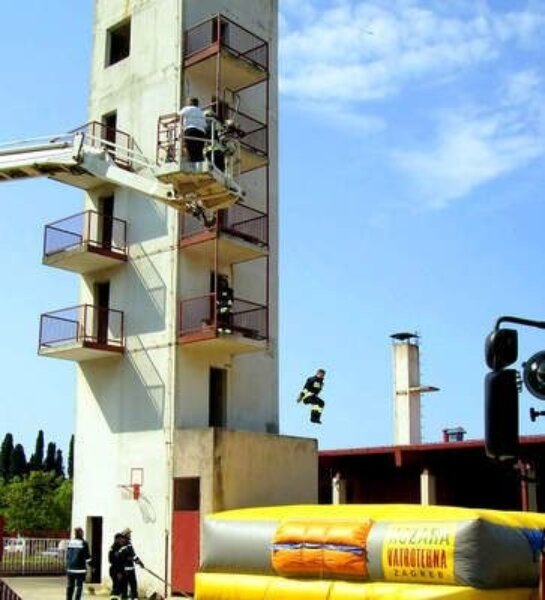 [slika1d]POREČ - Mališani iz vrtića i nižih razreda osnovne škole, natiskani uz ogradu iznad Vatrogasnog doma, nisu mogli dočekati početak, nestrpljivi kao u kazalištu. Najprije se mora čuti sirena, koja najavljuje vatrogasce koji kreću gasiti požar, upućuju ih stariji. A kako vatrogasci znaju kadi je požar, pita jedno dijete. Drugo odgovara da vatrogasci to vide na televiziji. Uto se oglašava sirena i tri vatrogasna automobila kruže oko tornja za vježbu, a djeca se stišavaju i napeto promatraju što će se dalje dogoditi.