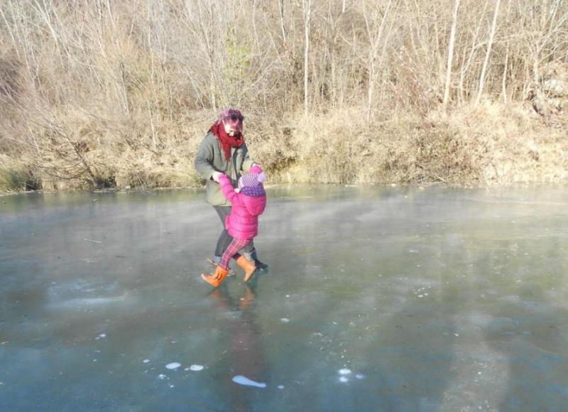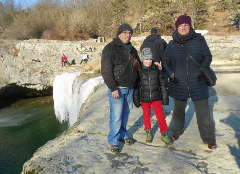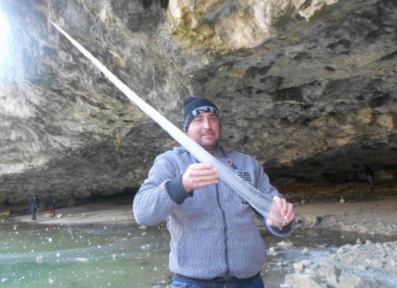 Spustih se u koloni pod slap, a i ondje mnogi uživaju u prizorima zaleđene vode, ali i ledenim sigama ili kako Pazinci kažu "klesnima" koji su visjeli iz stijene, zapravo iz pukotina kroz koje kaplje voda koja se ledi na niskim temperaturama. Prizoru se ne može nadiviti obitelj Korlević koja je iz Višnjana na proputovanju do Opatije "potegla" do Pazina da vidi zaleđen slap. O zaleđenom slapu doznali su preko facebooka, ali nisu požalili što su to došli vidjeti u živo kaže Ecio Korlević, dok s djecom glade do metar i pol duge "klesene".