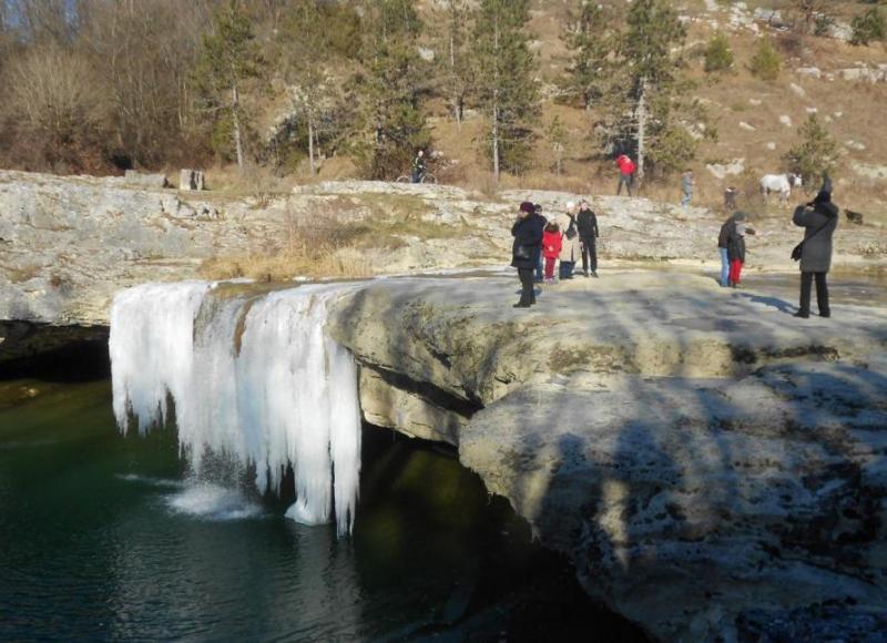 Snimaju se "selfiji", a s zaleđenih obala pod slapom skupina Fažanaca, koja je ovdje prvi put, ne može se nadiviti prizoru. "Ovdje se ljeti ljudi kupaju", pita me jadan od njih. "Da", odgovorih, a mladić znatiželjnim pogledom daje naslutiti kako će i ljeti doći vidjeti ovo mjesto.