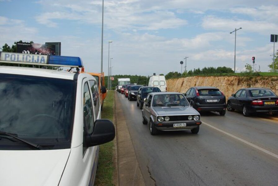 Krećuću se iz smjera Žatike prema Zelenoj Laguni, sredovječni vozač Mercedesa austrijskih tablica je, prema vlastitoj priči, u nastojanju da izbjegne frontalni sudar sa nizozemskim vozilom koje mu je pretičući dolazilo u susret, naglo skrenuo udesno prema pješačkoj stazi, pri čemu je udario u stup ulične rasvjete i potpuno ga uništio.