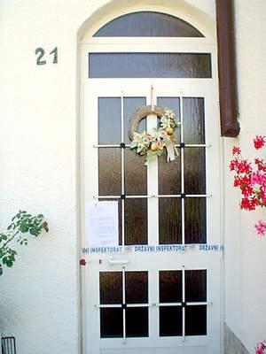 Došli smo, dakle, u dogovoreno vrijeme, točno nakon 24 sata, ali kroz portun nismo mogli proći. Bio je zaključan. Nakon što su neko vrijeme čekali pred ulazom, inspektori su se uputili na drugi ulaz kroz koji su turisti nesmetano ulazili i izlazili na ulicu. Na pitanje gdje je vlasnica, nisu znali odgovoriti, i sami su je zvali: »Frau Maria«, ali iz njenog stana nitko se nije javljao premda su se dan ranije uredno najavili za ovo vrijeme. Inspektori su se potom dali na posao – izvadili su trake, rješenja, pečate, te stoički na paklenoj vrućini odradili svoj posao. Netko je u međuvremenu zaključao i drugi portun pa je bilo moguće da inspektori ostanu u vrtu ili da se penju preko ograde jer se Frau Marija i dalje nije pojavljivala. Srećom, na jednim se vratima pojavio još jedan gost u kući koji im je otključao vrata.
