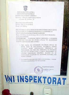 Jučer i prekjučer četvero djelatnika gospodarske inspekcije porečke ispostave Područne jedinice iz Rijeke zapečatilo je četiri apartmana i tri sobe – po dva turistička stana u Dajli i Poreču, te tri sobe u Labincima. Na vrata ovih turističkih jedinica zalijepljena je traka s natpisom »Državni inspektorat« te njihov pečat s upozorenjem na kojem piše: »Tko skine ili povrijedi službeni pečat ili znak koji je ovlaštena službena osoba stavila radi osiguranja predmeta ili prostorije, ili tko bez skidanja ili povrede pečata ili znaka uđe u takvu prostoriju ili otvori osigurani predmet, kaznit će se novčanom kaznom ili kaznom zatvora do jedne godine«. Epilog je to akcije što su je inspektori vodili puna 49 sata i početak i najava novog rada inspektora koji će težište svog posla usmjeriti, za razliku od višegodišnje dosadašnje prakse, prema iznajmljivačima na crno.