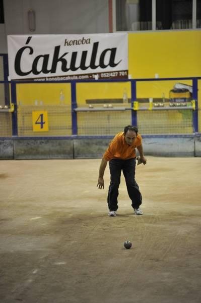 su Elvis Barbaro i Zoran Burić svladali Renata Šurana i Renata Mijančića rezultatom 5:2, dok su u drugoj utakmici ove skupine Darko Mofardin i Danilo Krizmanić u vrlo neizvjesnom susretu svladali Renata Furlanića i Dragića Terlevića rezultatom 6:5. U jednako toliko neizvjesnoj utakmici za prvo mjesto skupine, novo iznenađenje pripredili su Mofardin i Krizmanić svladavši Barbara i Burića s tjesnih 6:5, uz odličnu igru Mofardina koji je nekoliko puta spašavao igru pogocima balina. U repasažu su se Barbaro i Burić lako obračunali s protivnicima iz 1. kola, Šuranom i Mijančićem, koje su ovoga puta savladali rezultatom 13:0 te postali drugoplasirani par ove skupine.