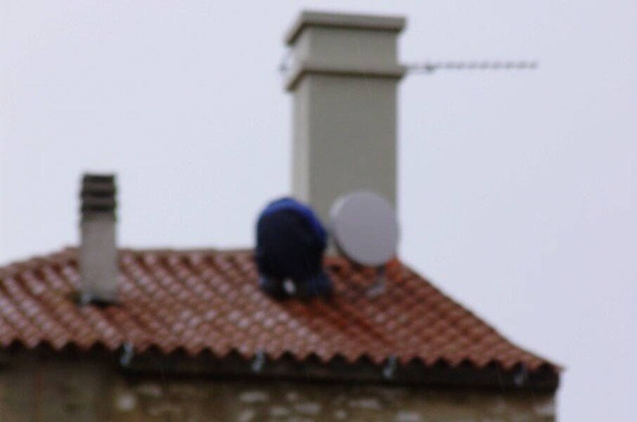 Građani su nam, u međuvremenu, poslali fotografiju montaže ”tanjura” pokraj lažnog dimnjaka koja je prilično mutna. Tanjur se vrlo jasno, međutim, vidi na fotografiji koju smo mi snimili naknadno.