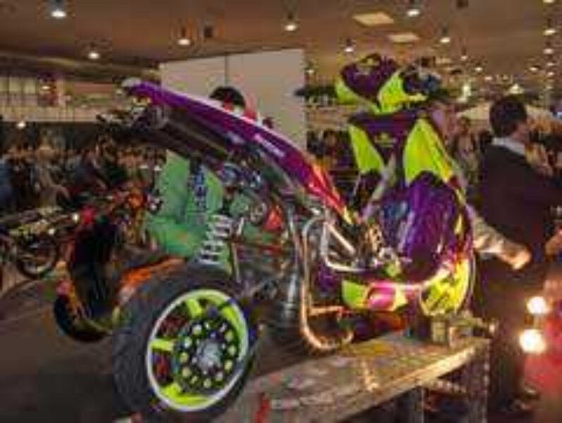[slika2]U četrnaest dvorana predstavljene su sve najveće svjetske moto kuće dok su se vani na dvije priručne piste vozili razni strojevi, od mini-motocikala do supermotarda. Krenuo sam od prerada streetfightera i dragstera pa do bicikala koji će izgleda uskoro iskočiti na široko tržište. Kratki pogled na štand sa maxi gumama (330/30/17),[slika3]nakon toga slijede skuteri koji su ovu godinu dobili skoro pola dvorane i privukli pažnju popriličnog broja mlađih posjetitelja. Po izlasku na zrak i «čik pauzu» (otvoreni je prostor jedino mjesto gdje je moguće zapaliti cigaretu a ne biti kažnjen radi novog talijanskog zakona o pušenju na javnim površinama), pogledao sam štandove sa «second hand»" robom. [slika4]
