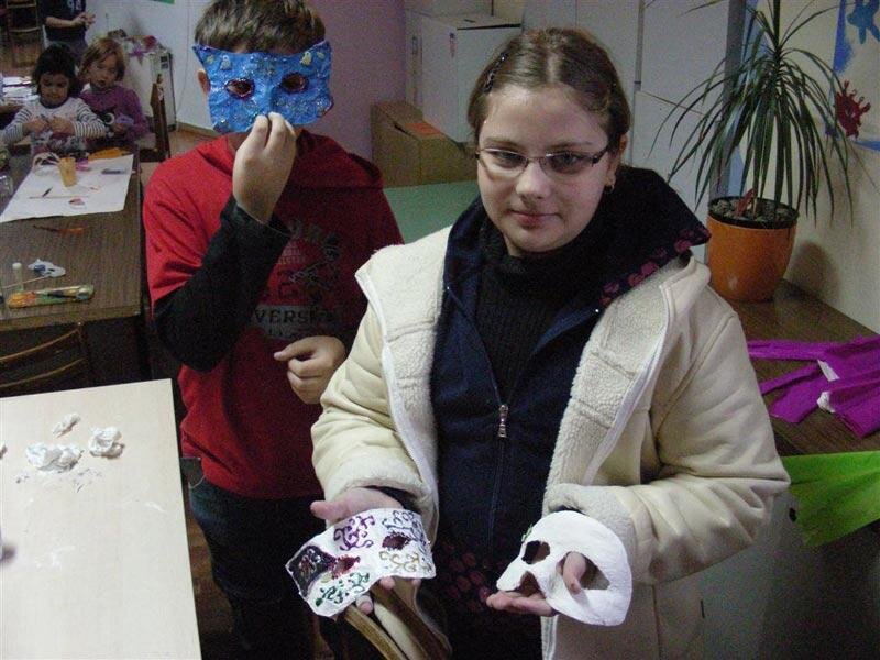 Jučer je u Društvu Naša djeca sa radom završila dvodnevna radionica izrade karnevalske maske. Uz puno zabave, vještine, mašte i hrabrosti polaznici su naučili na kakve se sve načine od predmeta koje je lako pronaći kući može napraviti atraktivnu karnevalsku masku, kao i personaliziranu (po svom licu napravljenu) kaširanu i gipsanu masku.