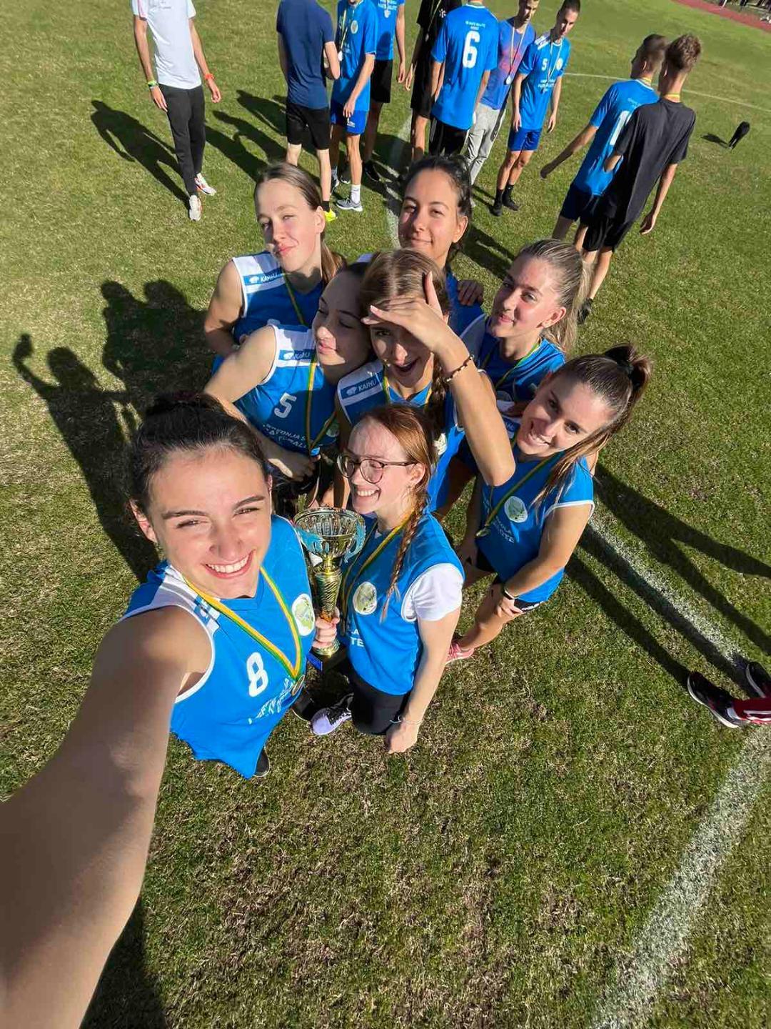 U štafeti djevojaka nastupile su Nika Jurišević, Viktorija Komšić, Andrea Matić i Asia Pol. Djevojke su u završnici pobijedile favorizirane pulske gimnazijalke i zasluženo postale županijske pobjednice te se plasirale na državno prvenstvo srednjih škola.