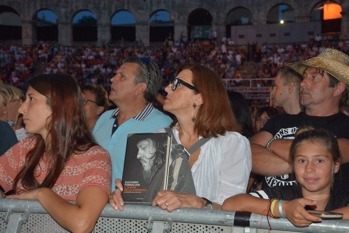 U prepunoj pulskoj Areni, Adelmo Fornaciari poznatiji kao Zucchero nastupio je u nedjelju navečer u sastavu svoje turneje "Black Cat", koja nosi naziv njegovog posljednjeg, dvanaestog studijskog albuma.